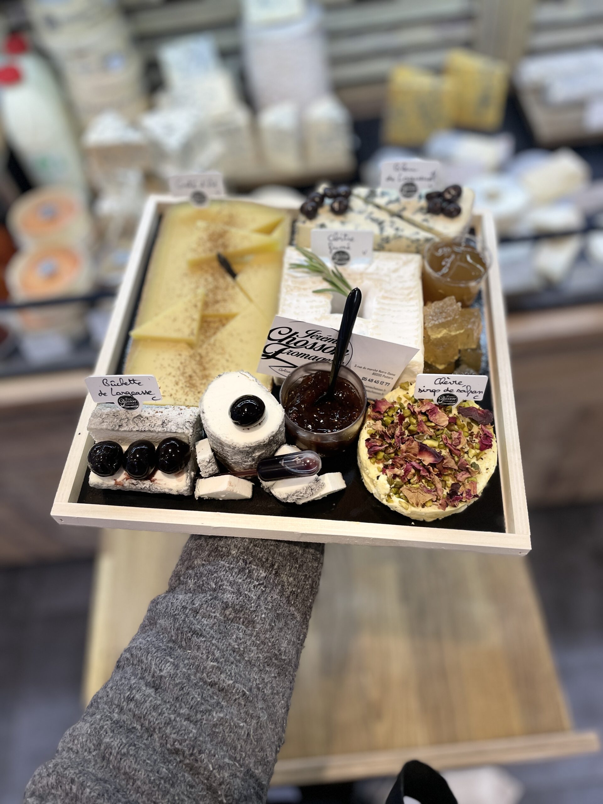 Sur chaque plateau, vous trouverez de délicats accompagnements qui participeront à sublimer chaque fromage : confiture, grains de café au chocolat, cerises amarena, gelée de thé vert, etc.